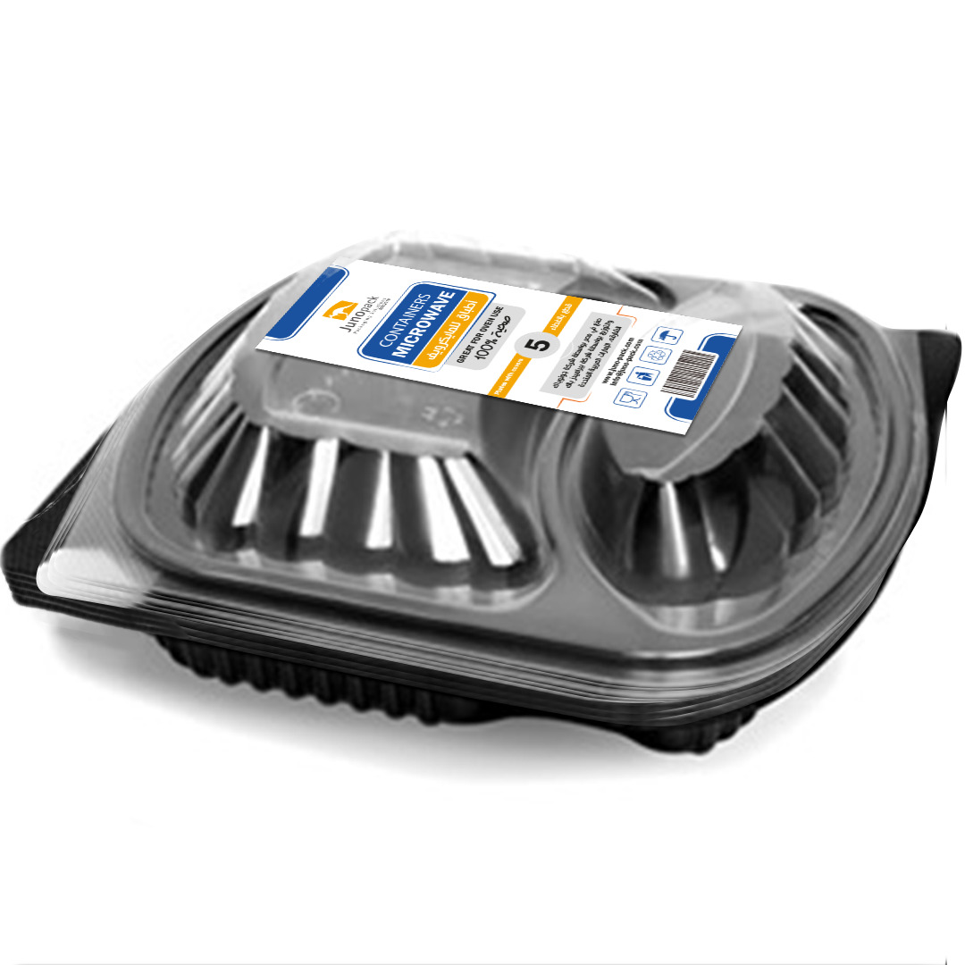(5 PCs) 2 Compartment Microwavable Container With Lid