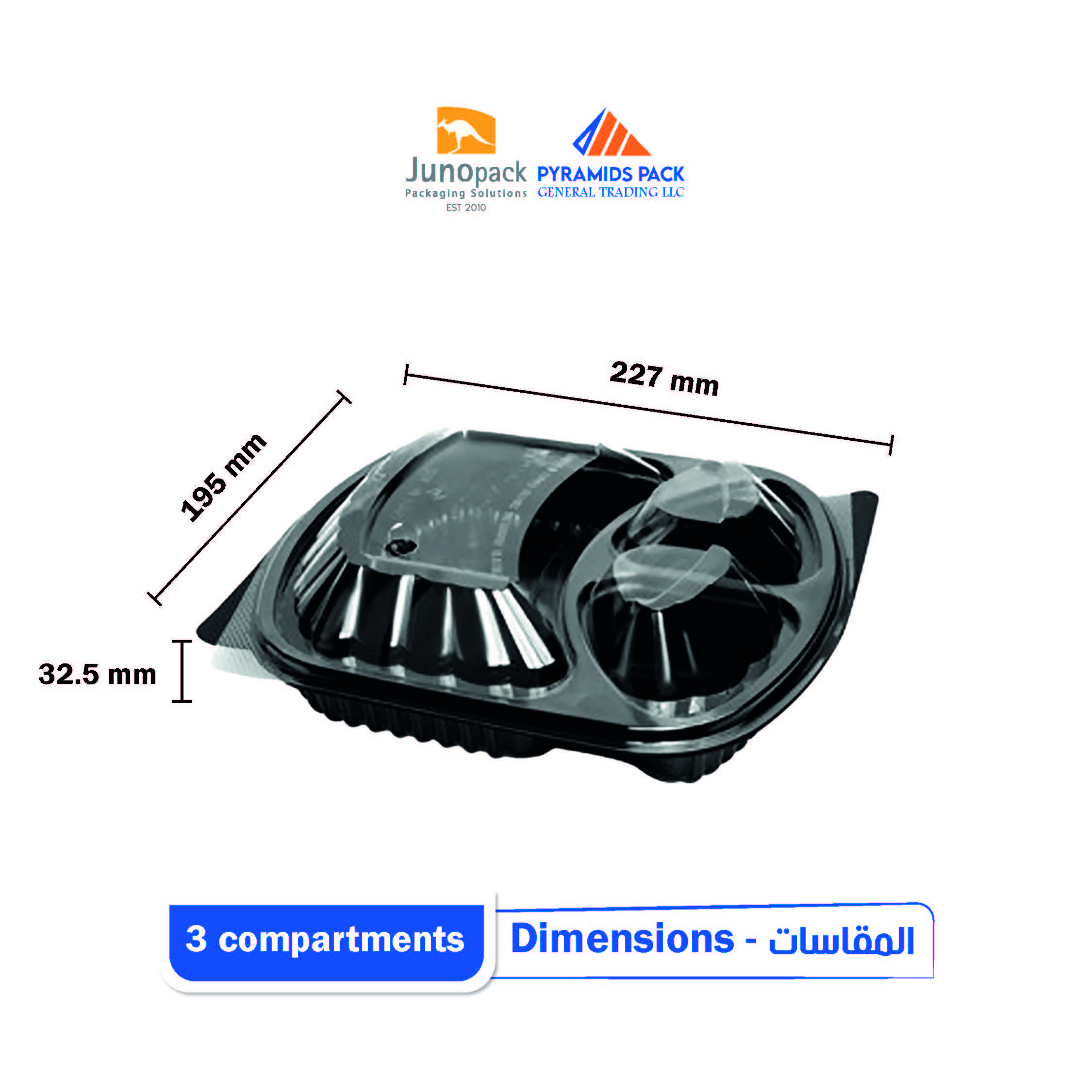 (200 PCs) 3 Compartment Microwavable Container With Lid