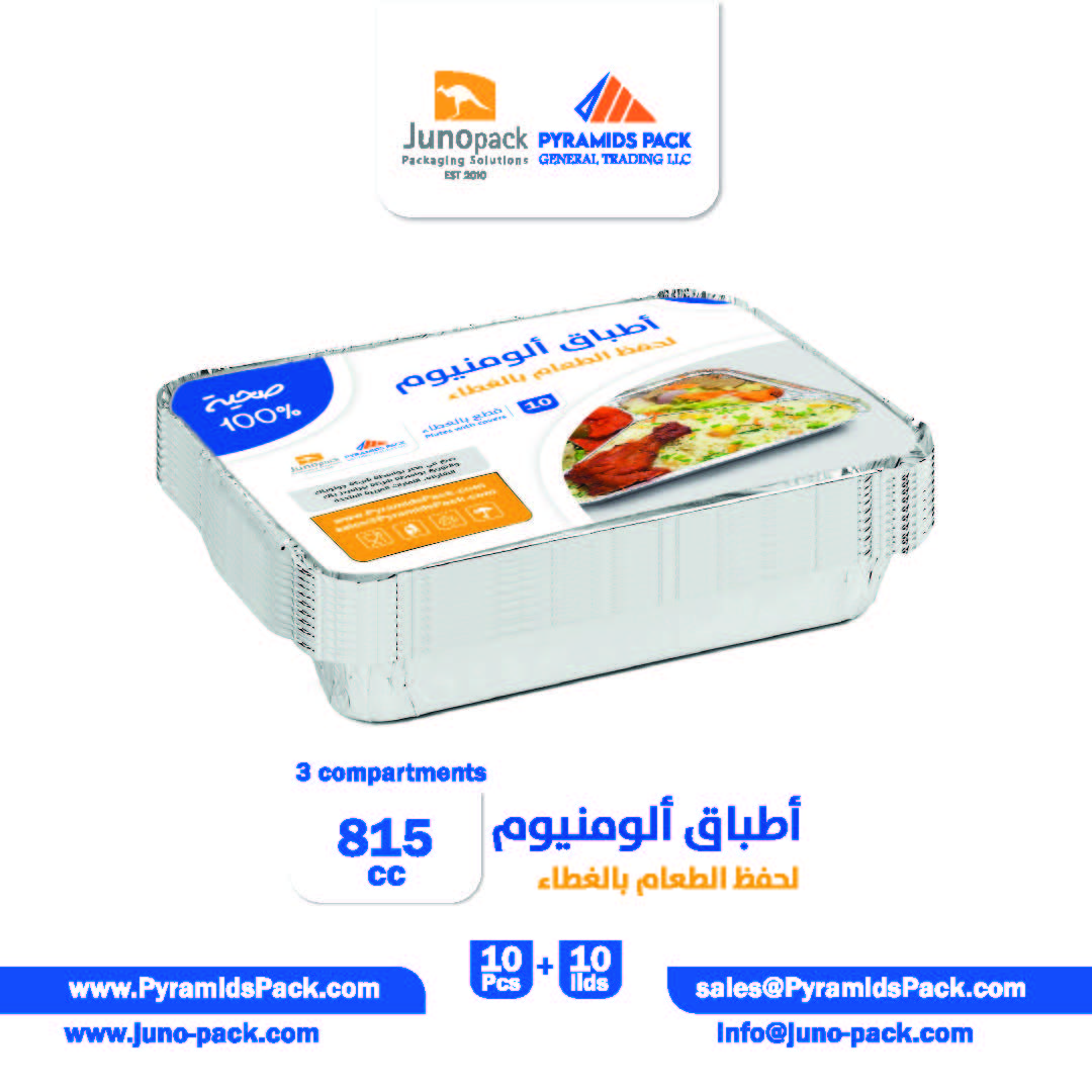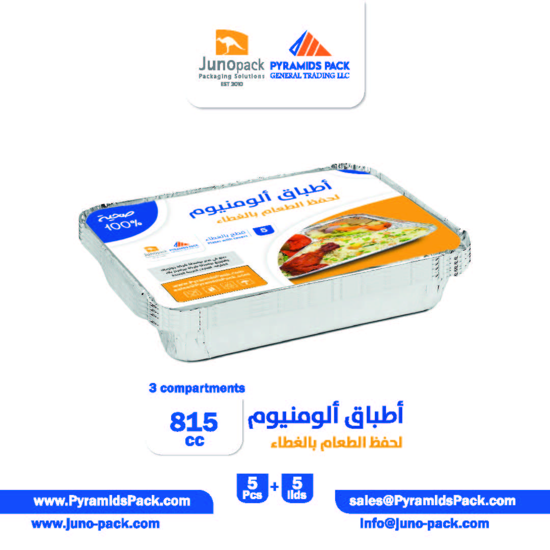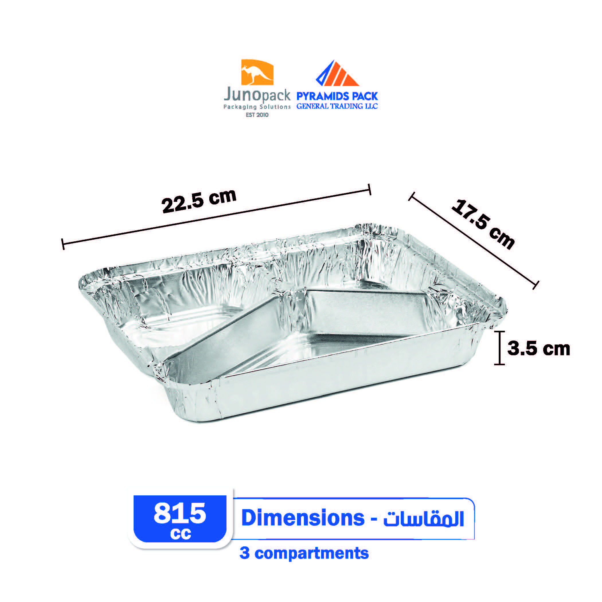 Aluminum Disposable Food Container 815 ml with Lid (3 Compartments)