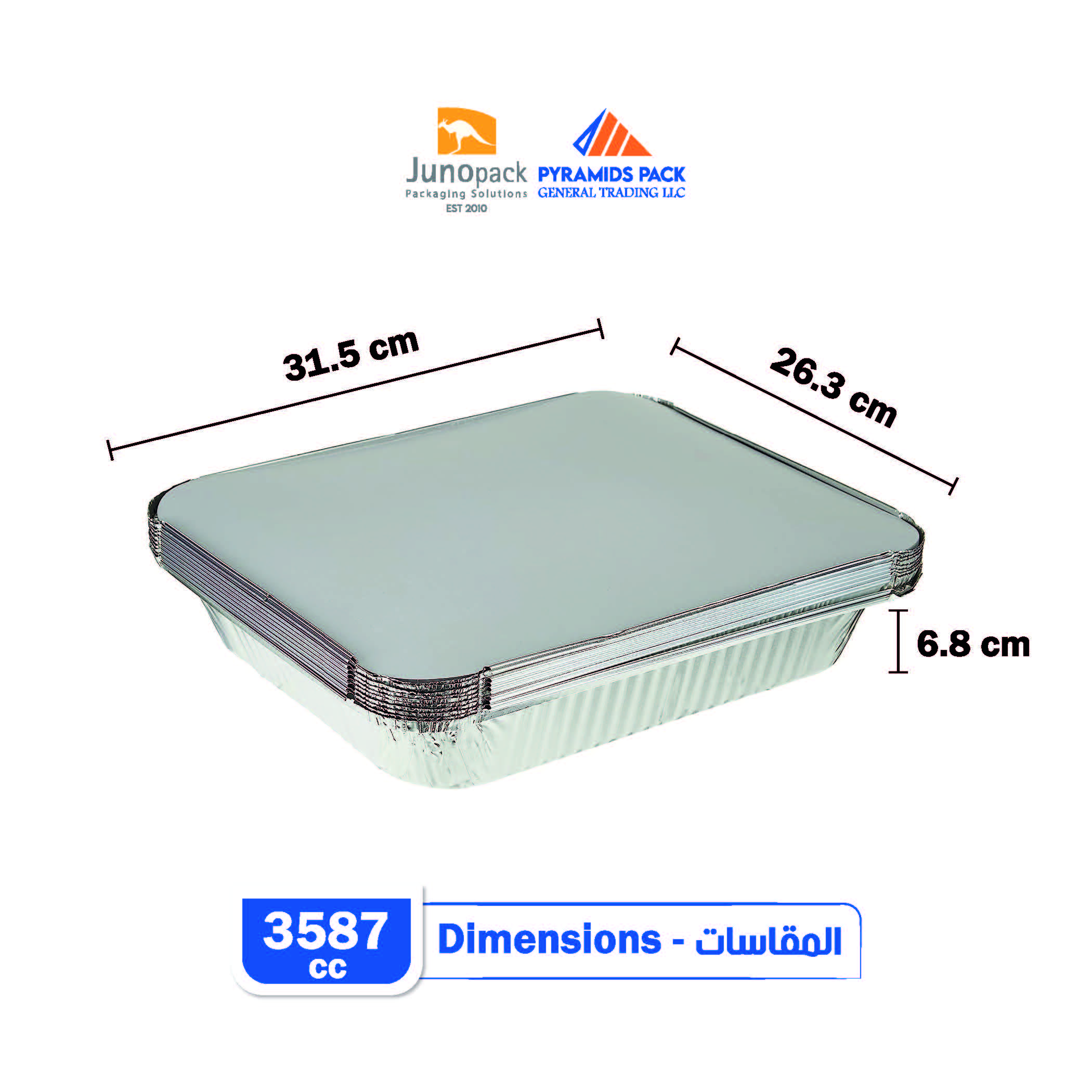 Aluminum Disposable Food Container 3587 ml with Lid.