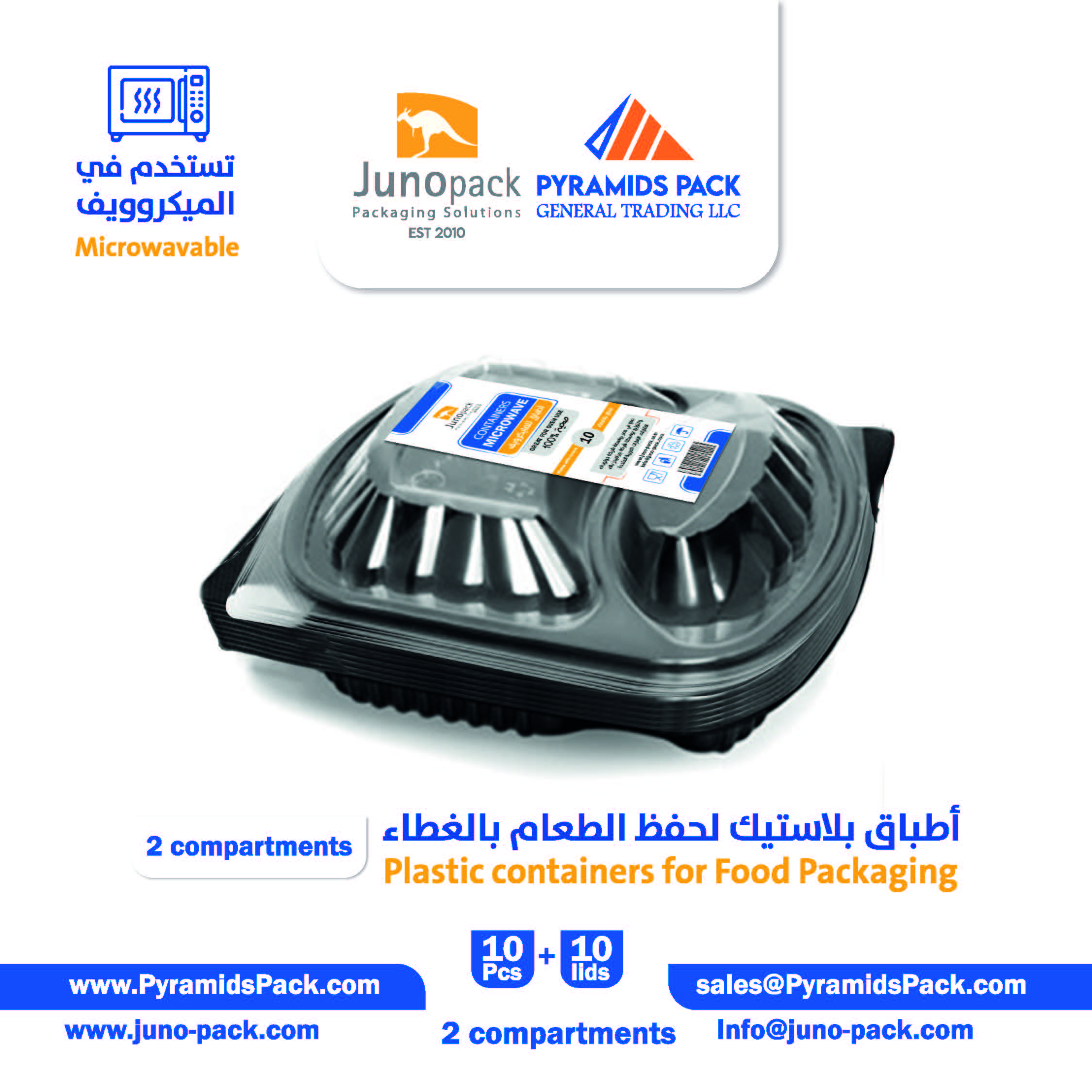 (10 PCs) 2 Compartment Microwavable Container With Lid