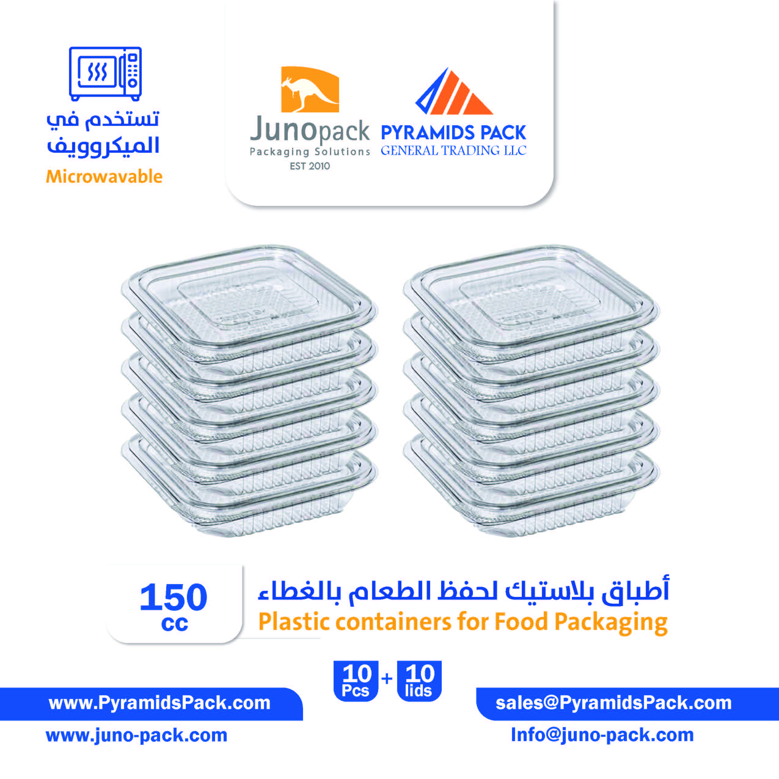 10 PCs 150 CC Transparent Rectangular Hinged Lid Container for Cold/Hot Food