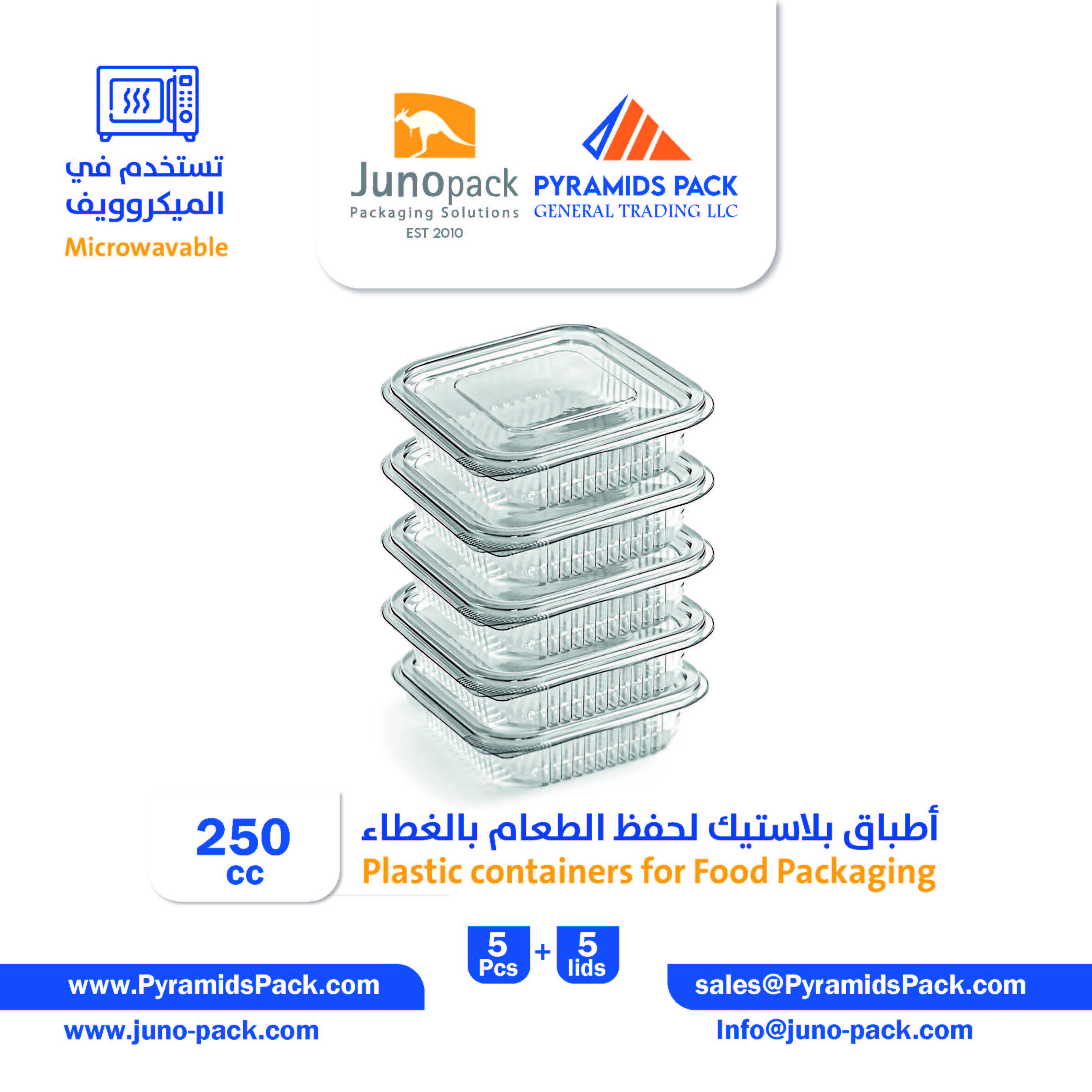 5 PCs 250 CC Transparent Rectangular Hinged Lid Container for Cold/Hot Food